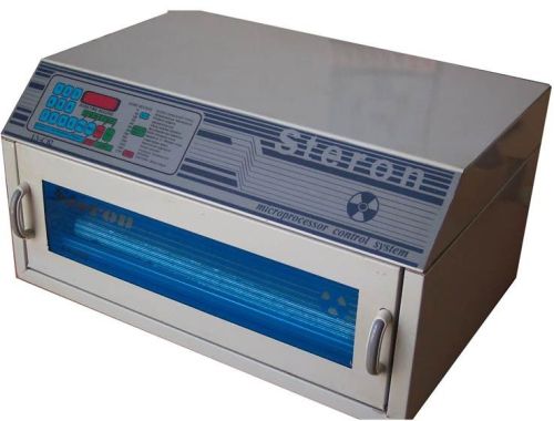 Steron uv-c82 sterilization device, makes sterilization with 254nm uv-c (ultraviolet short wave) cold radiation and required uv dose for eachmicroorganism family can be set digitally. Device has a "dose time off" system which electronically controls the sterilization time and stops the uv radiation automatically at the end of the sterilization time. Electronic card and microcontroller which is connected to security system, controlls the uv-c radiation and prevents from uv radiation leakage.