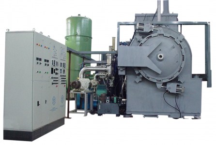 The furnace provides a uniform operating temperature of up to 1250 deg.C in the hot zone utilizing resistance heating by molybdenum band type heating elements. A vacuum system comprising a high speed diffusion pump in combination with roots and rotary pumps enables achieving a vacuum of 1x10-5 m.bar.