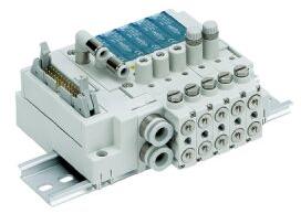 2 built-in spool valves Possible to control vacuum adsorption and release with a single valve unit. ・Width 10 mm (Same size as Series SJ3000) With a restrictor that can adjust the flow rate of the release air. Built-in replaceable filter on both vacuum and release sides. Combination of the 4 port solenoid valve SJ2000/3000 is possible. (Made to  Order) Manifold type No.: