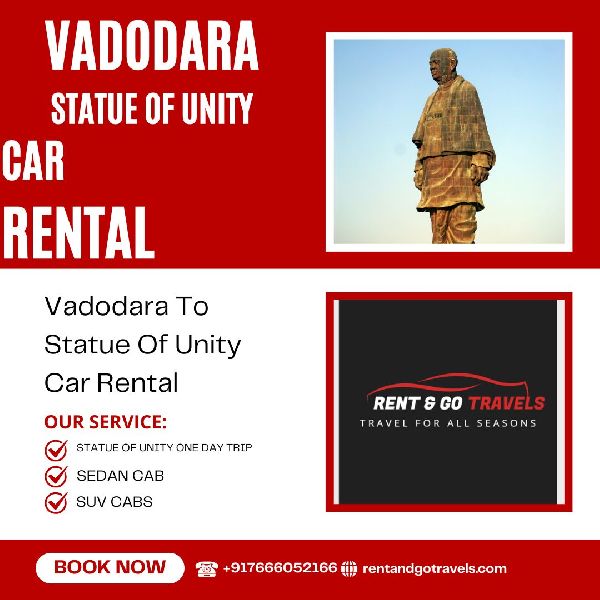 Looking for a reliable taxi service from Vadodara to the Statue of Unity? Rent & Go Travels offers the best cab services with well-maintained vehicles, professional drivers, and affordable fares. Whether you're traveling solo, with family, or in a group, we have a fleet of sedan, SUV, Innova, Ertiga, Tavera, and Tempo Traveller to ensure a comfortable journey.