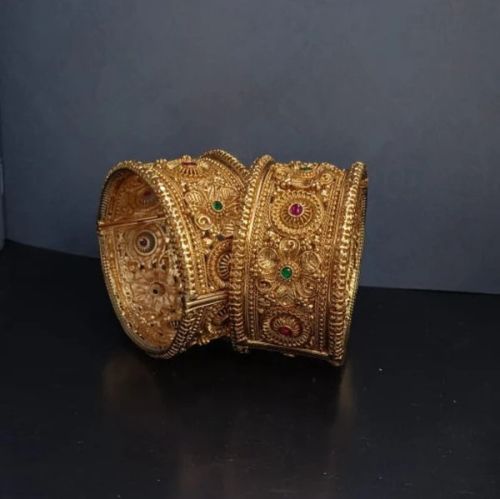 Contact SupplierThe Vasantika Temple Kada is a stunning example of traditional elegance, featuring a beautifully intricate floral design. Crafted with 22k gold plating, this kada is enhanced with vibrant kemps stones, adding a touch of classic charm. Its exquisite design is perfect for both festive and ceremonial occasions, making it a versatile piece for any ethnic ensemble.