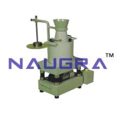 Cement and Concrete Testing Lab equipment manufacturers,exporters and Cement and Concrete Testing Lab suppliers A slump cone and a graduated rod supplied with the instrument helps the operator to find out slump values and Vibration Table with container and acrylic disc is used to find out workability of concrete expressed in Vee Bee degrees, which is defined as the time in seconds to complete required vibrating at which the fresh concrete flows out sufficiently to come in contract to the entire face of acrylic disc. Salient Features Specifications : The equipment consists of : A Vibrating Table size 380mm long and 260mm wide, resting upon elastic support at a height of about 305mm above the floor, complete with start/stop switch, cord and plug. A holder is fixed to the base into which a swivel arm is telescoped with funnel and guide sleeve. The swivel arm is also detachable from the vibrating table. A graduated rod is fixed on a swivel arm and its end a plastic disc is screwed. The division of scale on the rod record, the slump of the concrete in millimeters, supplied complete with a sheet metal container with lifting handles which can easily be fixed to the Vibrating Table. A slump cone open at both ends with lifting handles and a Tamping rod of size 16mm dia and 600mm long, rounded at one end. civil lab equipments manufacturers