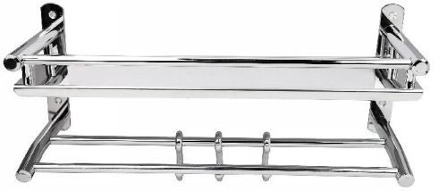 veer ss 202 high grade glossy double stand shelf multipurpose use for bathroom/ kitchen/ home décor [ size-15 inches length] made in india