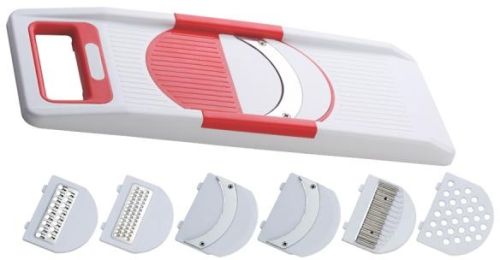 "Multi Purpose 6 in 1 Vegetable & fruit Slicer maker Different attachments for various shapes and size of slicing and cutting. You can quickly cut the salad Slices lemons, potatoes onion, all kinds of fruits and vegetables Makes jali wafers of potatoes. Easy to use Easy to clean. Must for an ideal home and kitchen. Very stylish & convenient. Maintenance simple and easy. It's all very very quick and fast.."