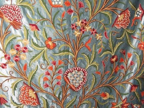 Velvet Crewel Embroidered Fabric Teal, Multicolor?