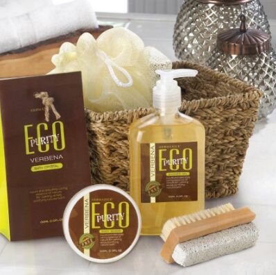 Soak in pure bliss with this deluxe verbena fragranced spa set. Inside the handsome woven basket you'll discover relaxing shower gel, body scrub, and bath crystals, along with a pouf and pumice brush for the ultimate in refreshing relaxation.