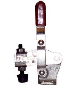 This is a light duty toggle clamp with a short handle and bar so the clamp can be mounted where clearance is limited. The clamp is equipped with a rubber capped adjustable spindle. It has a malleable base and link which provides strength greater than similar sized clamps.