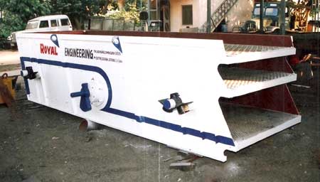 “ROYAL” vibrating screens are designed to make separation / filtration of crushed material from fine dust to oversized. The screen frame, a bolted & welded steel structure, accommodates the screen mesh & the drive unit. Application for: Stone, Coal & Minerals Seppartion. Machine Capacity range from 05 TPH to 200 TPH.