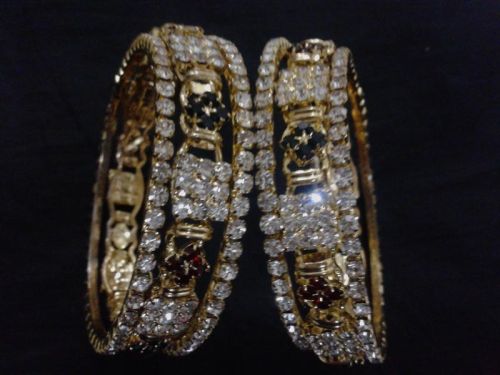 We are offering victorian bangle set. victoian bangle set of 6. Made with colorful stones transparent, red and black stone work.