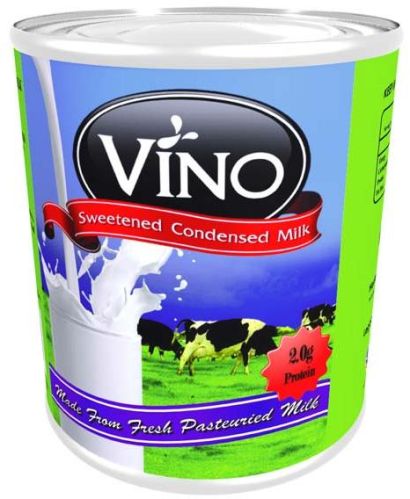 Vino Sweetened Condensed Milk ~2.0 gr protein~ is cow's milk from, which water has been removed. It is a special blend of milk and suger. Vino Sweetened Condensed Milk is a very thick, sweet product which when canned can last for years whithout refrigeration if unopened.