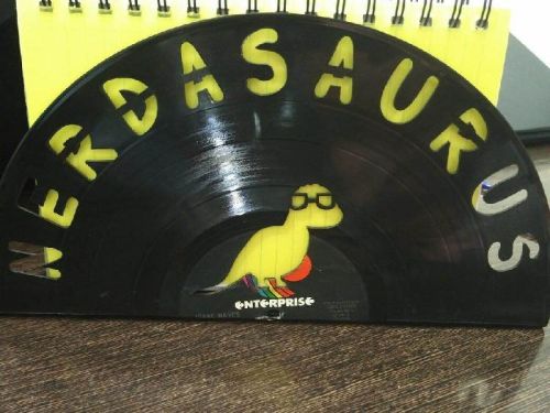 We are the supplier of this product. Rs. 499.00 An amazing combination of nerdy and dinosaurs. This set of two book ends can be used to create a shelf almost anywhere. Can be used in two directions and a perfect gift for a book lover. Made from real, waste vinyl records. Weighing 500 gms this sticker measures 12 inches diameter at a ninety degree angle Please Note actual product may vary from the image. Care Instructions: Wipe with damp cloth.