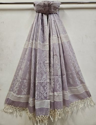Contact SupplierBring elegance to your attire with this beautiful light violet and white jacquard Jamdani dupatta. Woven from the finest, super-soft handloom cotton, with intricate weaves, it gives a touch of class and can be teamed with any attire. The dimension is 2.40 meters in length and 48 inches wide; hence, there are various styling options that one could try for any traditional and modern look.