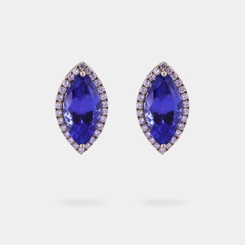 Violet Marquise Shaped 8.68 Carats Women Tanzanite Studs Earrings With Diamond?