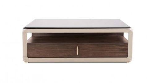 Elaborately designed center table offers huge storage space and is a fancy addition for modern living rooms. Voila has a tempered glass top with two broad drawers beneath with empty space above and below of the adjacent drawers.