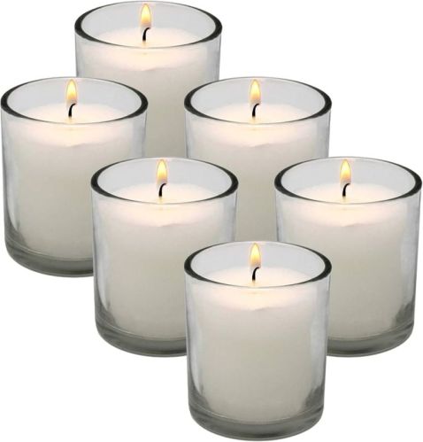 Polished Paraffin Wax Votive Candles, Shape : Round