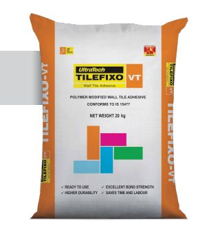 Contact SupplierUltraTech TILEFIXO VT is a cement-based, polymer modified, high quality tile adhesive recommended for fixing small format vitrified tiles on floor & wall in internal areas.