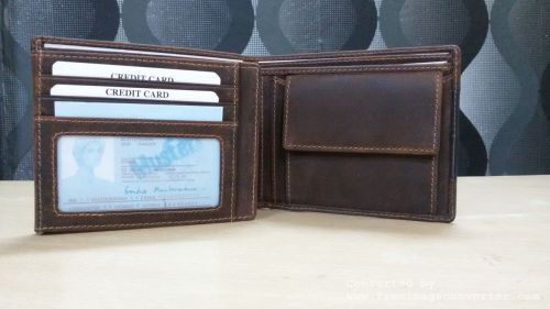 The wallets develop with cow 2 tone hunter leather, dimensions of the wallets h - 10 cm l - 12 cm ( closed ) top of the wallets makes with 2 colours of hunter leather with the contrast stitch. It's a single container wallets, have 6 card slot, 1 driving license & 1 transparent card slot, 1 big coin pocket, middle zip pocket, 2 dividers. Lining uses tan colour polyester tofeta as per leather tone.