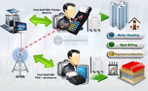 3) generation of bill or receipt based on payment collection from customer and updating or transferring the information/data on the spot to server through gprs facility.
