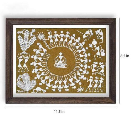 Contact SupplierThis beautiful work of painting is handmade by the warli tribes. Warli painting is an art form created by the warli tribes from the North Sahyadri Range in Maharashtra, India. This range encompasses cities such as Dahanu, Talasari, Jawhar, Palghar, Mokhada, and Vikramgad of Palghar district. This painting shows a Tarpa Dance. Each painting is uniquely hand-painted on canvas using organic colors like Red mud, Wood Coal, Rice flour paste, and some mixed Colors. It is an Exclusive Show-Piece for your Drawing Room.