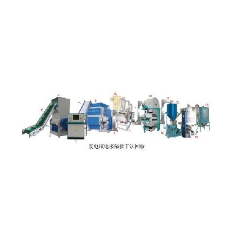 this production line is used to recycle waste battery electrodes with dry separation method ,and suitable for all kinds of waste old battery dry electrode without acid liquid, it can separate the lead,lead slime, plastic plate, plastic, glass fiber from electrode.the purity of lead can be up to 99.7%, the purity of lead slime can reach 99.5%, and the purity of plastic and other fiber mixing can reach 99.9%, this process is in the production of every link without any chemical raw materials and water, no heating, it is according to the different physical properties of various substances without the pollution of air, water, soil and noise .all equipment use plc automatic control, only need to two person.