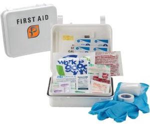 Contains the following: 10 Woven Band-aids 3 Woven X-Large Band-aid 4 Woven Knuckle Bandage 5 Woven Fingertip Bandage 2 Gauze Pads 1 Adhesive Tape 1 Gauze Bandage 15 Antiseptic Wipes 3 First Aid Burn Cream Packets 3 Triple Antibiotic Ointment Packets 4 Extra Strength Non-Aspirin 4 Ibuprofen 2 Motion Sickness Tablets 3 Sting Relief Wipes 2 Nitrite Exam Gloves 1 Cold Pack 1 Tri-lingual First Aid Guide