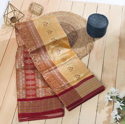 Weaving Designer Golden Silk Saree, Saree Length : 5.5 M