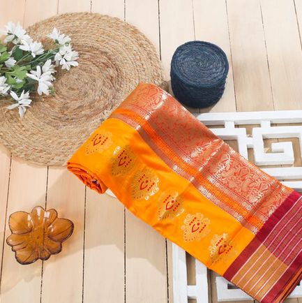 Weaving Designer Yellow Silk Saree, Saree Length : 5.5 M