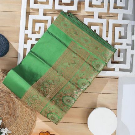 Green Silver & Golden Work Art Silk Saree?
