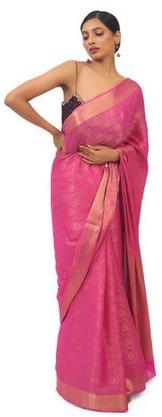 Soft Georgette Designer Rani Pink Saree with Golden Work
