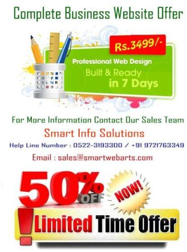 Promote your business with your own website now just start from rs. 3,499 only with more best features as below. domain name registration (for one year) 500 mb web hosting space up to 5 page designing up to 3 email accounts inquiry form flash header google submission