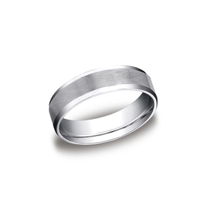 Benchmark White Gold Beveled Edge Satin 6mm Size 10 Men's Wedding Band. This men's wedding band is made of 18 karat white gold. It is 6mm wide and features beveled edges with a satin finished center. The ring is size