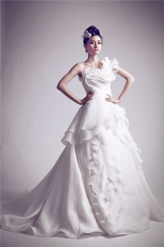 We are offering ball-gown one-shoulder court train organza wedding dress with ruffle lace beadwork flowers. mei ni qun wedding dress\r\nmodel no.�mc1 \r\nsize�m ; bust: 87cm; waist:65cm; hip: 90cm; height: 170cm \r\nstyle�one shoulder/ a-line tail\r\ncolor�white\r\nmaterials�high grade 2080 organza/ lace/ swarovski crystal bead