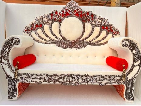 Contact SupplierIntroducing the CM-10 White metal Wedding Sofa, a handcrafted masterpiece thatll elevate the ambiance of any wedding occasion. The sofa is tailored with premium quality upholstery and features decorative stitching for a luxurious finish. The reinforced frame construction ensures durability and long-lasting use. The sofa is made of wood and seler, providing a sturdy base for seating. The multi-color design adds a touch of elegance, making it perfect for any wedding theme. This sofa is sure to make a statement and create a stunning focal point for wedding photos.