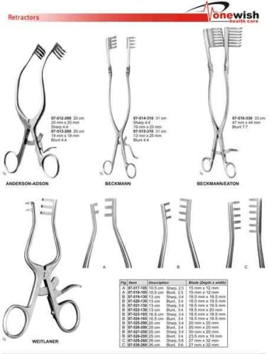 We are offering weitlaner retractor, affordable medical-surgical devices, instruments, and products to the right people . . . Right place . . . Right point in time . . . you need more information please visit our website for catalogue, quotation and for further specification.