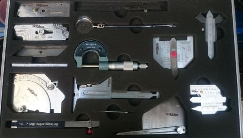 13 pcs Welding Gauge Kits Packed In Suitcase  1.V-WAC Gage 2.Fillet Welding Gauge 3. WTPS Gage  4.Bridge Cam 5.Single Purpose 6.150mm Scale 7.Telescoping Mirror 8.Micrometer 0-25mm 9.Hi-Lo Gage 10.Skew-T Fillet Weld 12.AWS Welding Gauge 13.Weld Seam Gauge 14.Universal Welding Gauge