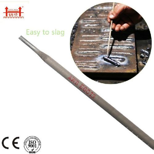 Contact SupplierWelding Rod Material E4313 E4013 2.5mm Product Description AWS E6013 is a rutile based, medium coated general purpose electrode suitable for welding mild steels. The superb and controlled flux formulation ensures excellent performance of the electrode in AC/DC in all welding positions. With its soft, forceful steady arc, easy slag detachability, fine rippled & shiny bead, and characteristics like easy maneuverability in all positions make COPPER BRIDGE a welder-friendly electrode. Aws E7018 used for welding carbon steel and low-alloy steel strutures, such as 16Mn,etc. AWS E6011 suitable for butt welding ,fillet welding and lap welding on thin plates, such as low-carbon steel structures like flues of power stations, air ducts, transformer oil tanks, hulls, exterior panels of cars, etc. Product Name E6011 E6013 E7018 Model CB-J425 CB-J421 CB-J507 GB E4311 E4313 E5018 Diameter(mm) 2.5-5.0 2.5-5.0 2.5-5.0 Type of Coating Cellulose Type Tiatania Type Low-hydrogen Type Current AC DC AC DC AC DC  Chemical composition of welding electrode (%) Model Item C Mn Si S P E6011 Guarantee Value ≤0.20 0.30-0.60 ≤0.30 ≤0.035 ≤0.040 E6013 Guarantee Value ≤0.12 0.30-0.60 ≤0.35 ≤0.035 ≤0.040 E7018 Guarantee Value ≤0.12 ≤1.60 ≤0.75 ≤0.035 ≤0.040  Mechanical properties of deposited metal (%) Model Item Tensile strength Rm (MPa) Yield Strength ReL (MPa) Elongation A (%) AKV impact Value