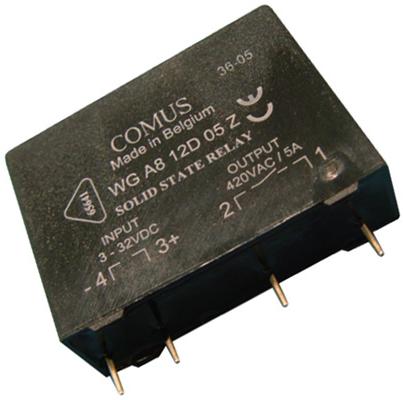 PCB Mounting, AC Loads, 5A420 to 660V Especially developed for PCB mounting with very small dimensions and load currents of 3A or 5A. THere are types with 600 V peak-off-state voltage as well as types with 1200 V available. The WG A5 is available in zero cross switching (Z-types) for resistive and capacitive loads or in random switching (R-types) for inductive loads.