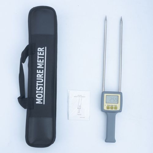 Specification display:4 Digital Lcd measuring Range :7%-28% temperature:0-60 humidity:5%-90% resolusion:0.1 accuracy: ± 0.5%n operation: Electrical Resistance Method, Automatic Temperature Compensation power Supply: 4x1.5 Aaa Size (um-4) Battery dimensions: 460mm×75mm×35mm weight:203g (not Including Batteries) guarantee:1 Year grain:25 Kinds