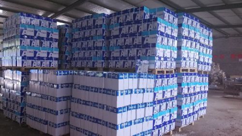 Paper specifications! Gramage: 80gsm, 75gsm, 70gsm Quality: Imported 100% Natural Wood Pulp Brightness = 102-104%,Natural White Capability: High Speed Copying100ppm, Laser Capable,Inkjet Capable, Fax Capable. Thickness: 103-110 um Surface roughness TS mlmin: 75-175 Surface roughness BS mlmin: 100-200 Bending stiffness MD: >110 Mn Bending stiffness CD: >50 Mn CIE whiteness: 148-152 or 152-165 Cobb Test: 27-33 gm2 27-33 Two-sided usage gives the paper sheet high capacity. Smooth paper surface makes sharp printing and copying. Moist protected wrapper
