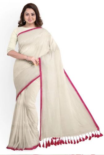 Off-White Super Soft Handloom Mull Cotton Saree With Small piping Pink Border. Attached on the Aanchal are Pink cute pom-poms Easy Wearable. Lightweight saree. Comfort Wear. Daily wear. Office wear Handloom Saree Cotton Saree Saree Lenght: 5.5.Mt Saree Care: Dry Wash Saree No Blouse