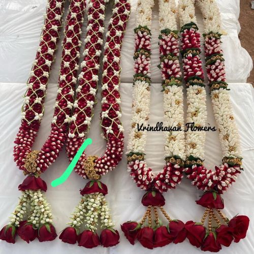 White and Green Real Flowers Garlands, Packaging Type : Red
