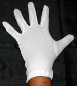 White Cotton Handgloves made from superior quality cotton available with single palm and double palm, sizes available from 10” to