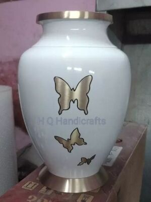 Technique Painted Style Modern Arts Size 10" Regional Style Indian Product Type Aluminium matt Butterfly design printed, Enameled Cremation Ash Urn