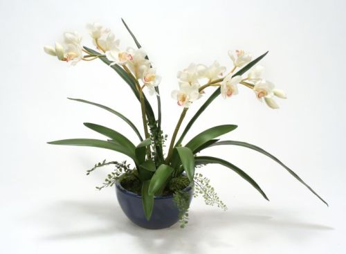 9097# - White Cymbidium Orchid Plant in Navy Earthenware Bowl Container Material Earthenware Dimensions Height" x Width" x Depth" 25 x 29 x 17 Dominant Color White Dominant Color Family Neutrals Shipping Weight 12 Ships