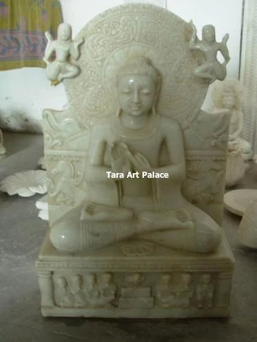 Marble Dharmachakra Mudra Buddha Statue, Color : White