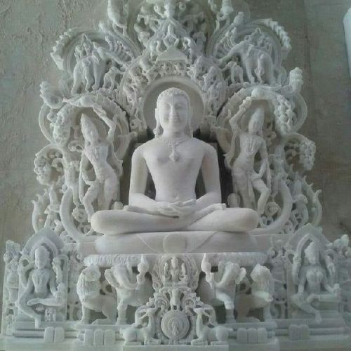 Polished Marble Mahavir Swami Statue, For Dust Resistance, Shiny, Pattern : Carved