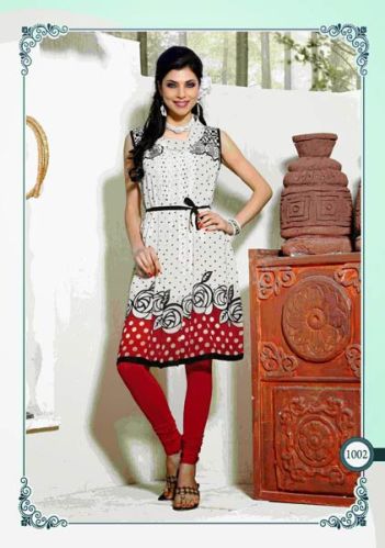 we offer Georgette Kurtis Online. Refreshing White, Red and Black color Georgette kurti. The tunic is engraved with fancy machine embroidery adding an alluring look to it.