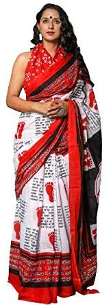 White Red Indian Holy Festival Paglia Aunthentic Design Pure Cotton Mulmul Printed Sarees?