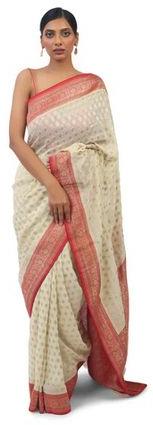 White Soft Georgette Saree with Banarsi Print