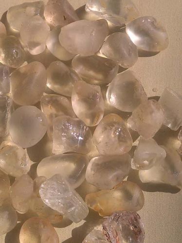 We have natural white topaz from nigeria. We have in stock sizes from 3-9grams and we sell in these categories: 3-4grams per kilogram and 5-9grams per kilogram.